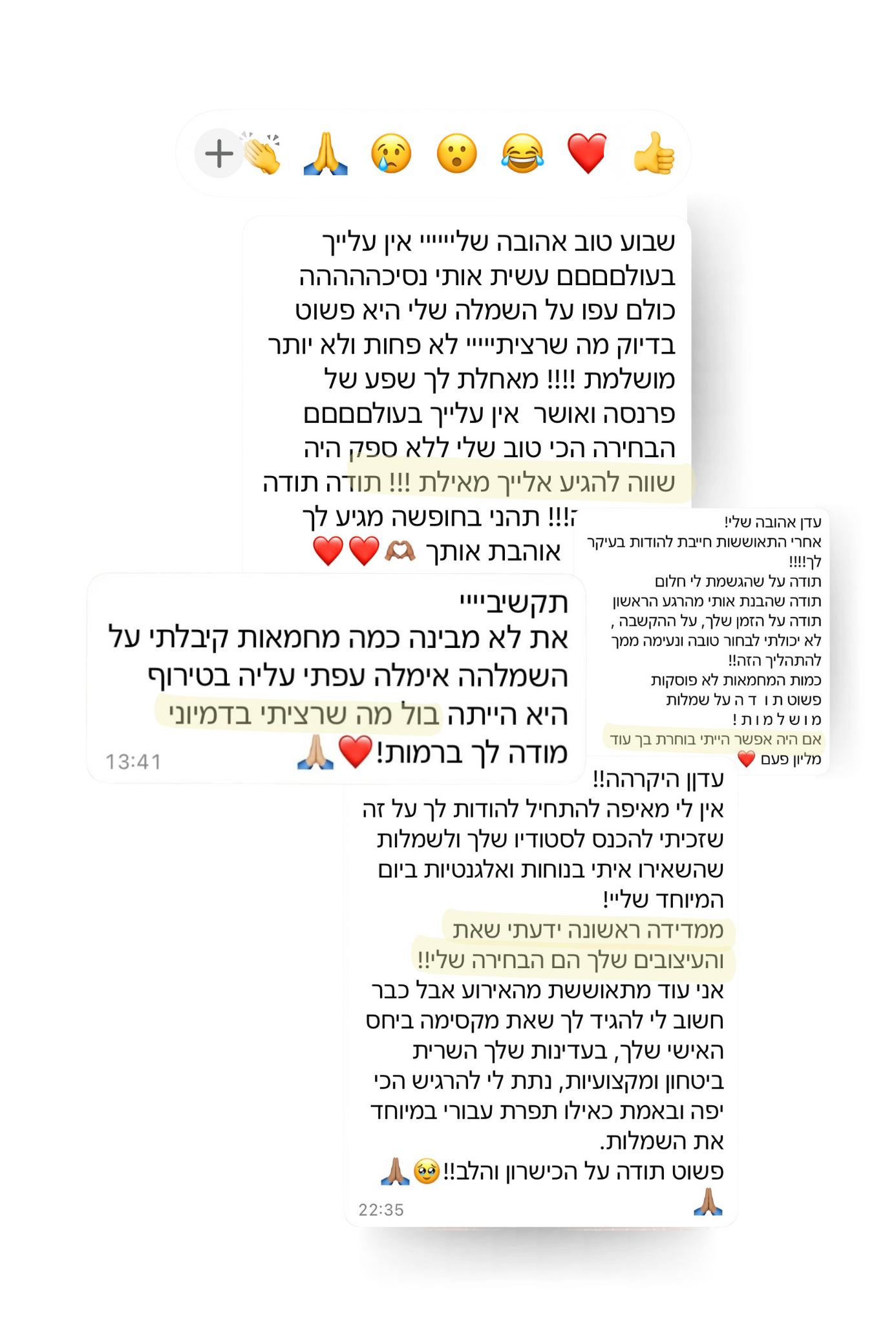 בסטודיו שלי במודיעין אני זוכה להגשים, פעם אחר פעם, את החלומות של כלות שמחפשות שמלה מושלמת,
